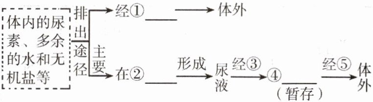 )A.①指皮肤中的汗腺,汗液中含有尿素