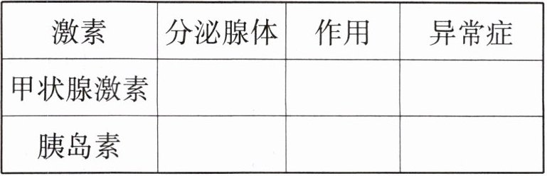 | 甲状腺激素 | 甲状腺 | 促进新陈代谢和生长发育,提高神经系统的兴奋性 | 呆小症(幼年分泌过少)、甲亢(成年分泌过多) |