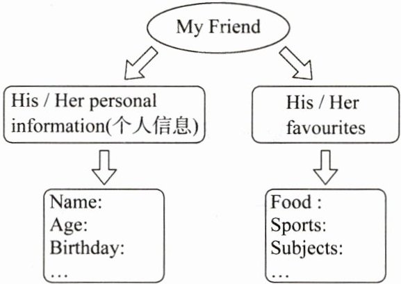 进入初中以后,你肯定认识了不少新朋友吧? 请根据下面的思维导图信息,将你的一位朋友介绍给大家吧!
