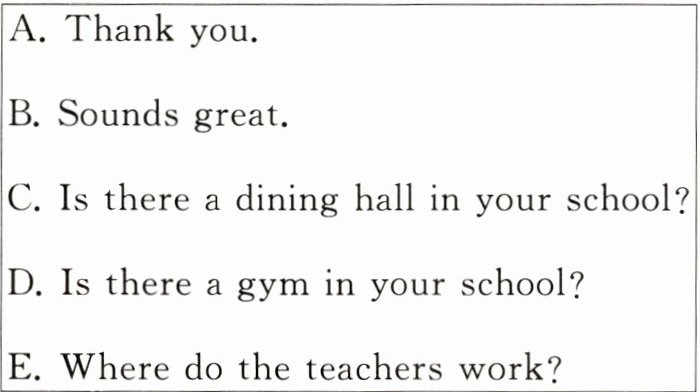 M:Yes. There is a gym on the left of the dining hall. The students can have fun there.