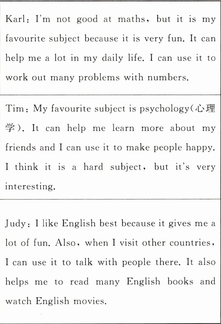)2. Tim’s favourite subject is psychology. [A] Right [B] Wrong(