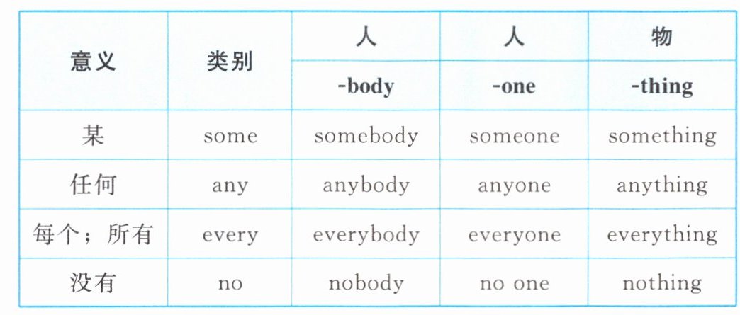 由 some,any,every,no 加上 -body,-one,-thing 构成的不定代词叫作复合不定代词。除了 no one 以外,其他复合不定代词都写成一个词。复合不定代词相当于名词,在句中用作主语、宾语或表语。复合不定代词做主语时,谓语动词用______形式。