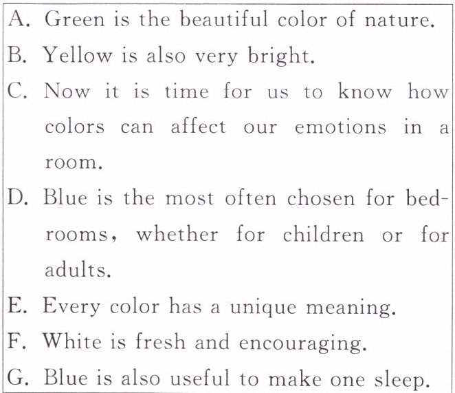 Many of us, who have a “meditation(冥想)room”, do so because blue can make people relaxed and peaceful. 3. G