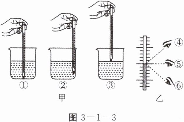 7. 如图3-1-3所示是某小组在使用实验室温度计时的几种情况,请据图回答下列问题: