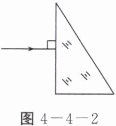 5. 如图4-4-2所示,一束光垂直射到玻璃砖的一个面。作出这束光进入玻璃砖内的径迹和从斜面离开玻璃砖后的大致径迹。要求在斜面处标出法线。