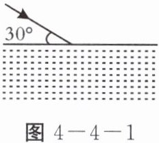 4. 一束光从空气斜射到某液面上发生反射和折射,入射光线与液面成$30^{\circ}$角(如图4-4-1),反射光线与折射光线的夹角为$83^{\circ}$,则反射角的大小为