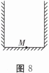 8.(郴州)“井底之蛙”这个成语大家都很熟悉,图 8 中$M$点表示青蛙。请根据光的直线传播知识画图说明为什么“坐井观天,所见甚小”。(必须标出光的传播方向)