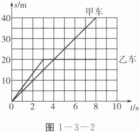 4. 甲、乙两辆车同时从同一地点出发,其 $ s - t $ 图像如图 $ 1 - 3 - 2 $ 所示,由图像可知 (