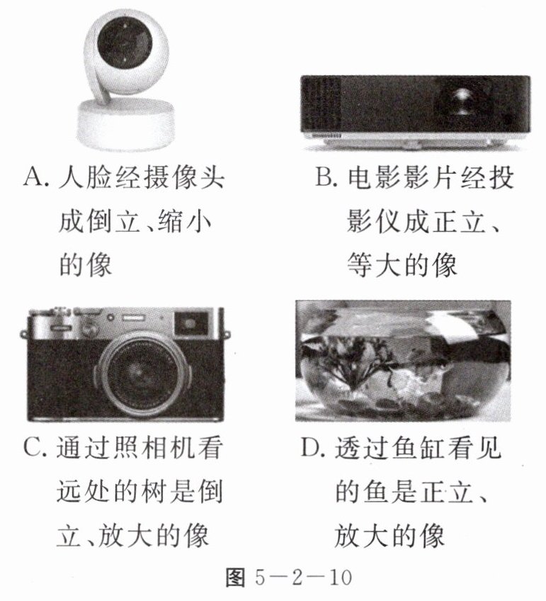 2. 【现代科技】购物支付已进入“刷脸”时代,消费者结账时只需面对摄像头(相当于一个凸透镜),经系统自动拍照(利用电子技术进行倒转正处理)、扫描等,确认相关信息后,即可迅速完成交易(如图5-2-9)。下列有关说法正确的是(