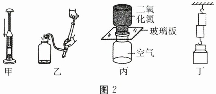 C.如图2丙所示,抽出玻璃板,下瓶中出现红棕色二氧化氮气体,表明气体间可以发生扩散现象