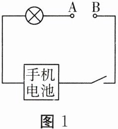 4. 小吉发现了一块手机电池,他想知道这块电池的“+”“-”极,于是他设计了如图 1 所示的电路,并在 A、B 间连入一个元件,下面的元件中不能达到目的的是(