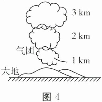 11. 当太阳烤暖大地时,使得下层的气团温度升高,密度减小,因而上升,如图4所示,上升的气团膨胀,推挤周围的空气对外做功,因此内能改变。所以越高的地方,空气的温度越