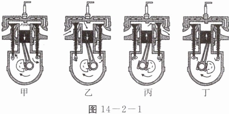 2. 如图 14 - 2 - 1 所示为某单缸四冲程汽油机工作示意图,下列说法中正确的是(