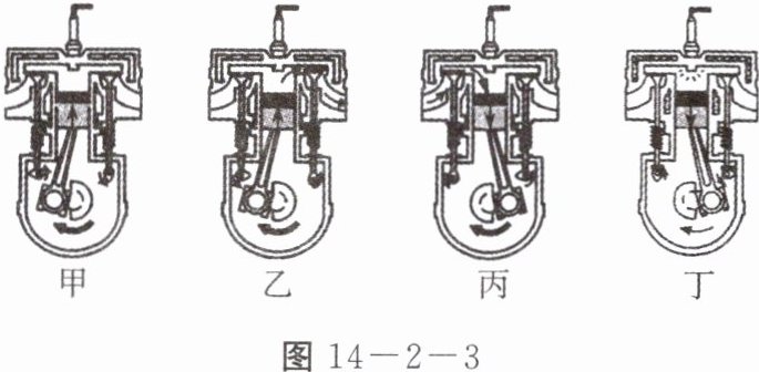 5. 如图 14 - 2 - 3 所示为汽油机工作时各冲程的示意图,请按要求填空。