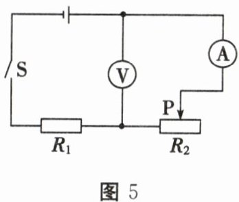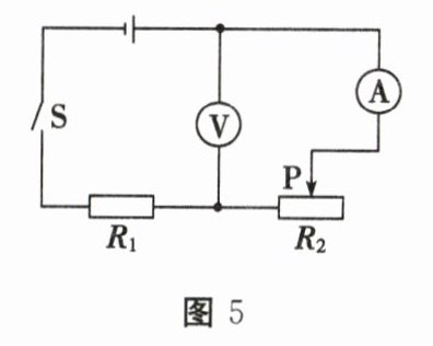 8. 在如图5所示的电路中,闭合开关S,当滑动变阻器的滑片P向右移动时,电压表、电流表的示数的变化情况是(