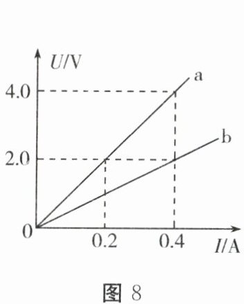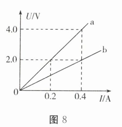 12. 小吉在探究通过电阻的电流跟其两端电压的关系时,用记录的实验数据作出了如图8所示的U-I图像,则a的电阻为