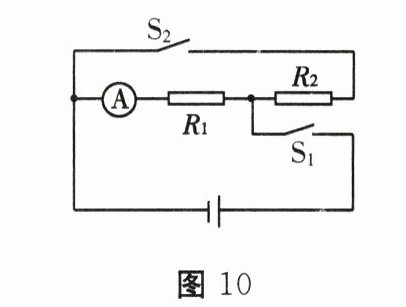 (2)当S₁断开,S₂、S₃闭合时,电阻为R₁和R₂的电阻器并联,通过电阻为R₂的电阻器的电流I₂=I - I₁=0.75 A - 0.45 A=0.3 A,电阻R₂=U₂/I₂=U/I₂=9 V/0.3 A=30 Ω。