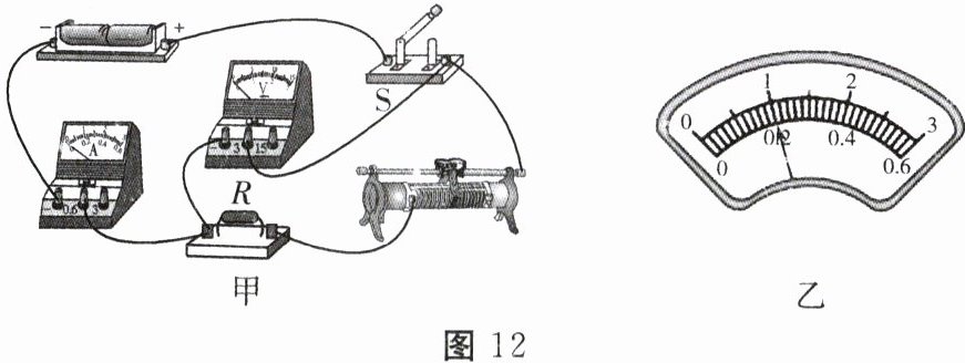 (2)电路改正后,进行了三次实验,在第二次实验中电流表示数如图12乙所示,请将电流表示数填入表格空白处。