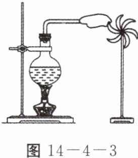 1. (多选)小林学习完热机后,利用厨房里的蒸蛋器自制了一个简易“蒸汽机”,如图 14 - 4 - 2 所示。在使用过程中蒸蛋器会通过上方的小孔喷出蒸汽,小林将自制的风车放在蒸蛋器上方,成功地让风车转了起来。下列说法正确的是(