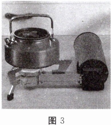 7.(苏州)如图3所示为某折叠卡式炉,采用丁烷气体作为燃料。水壶装入2L初温为25℃的水,用卡式炉加热至100℃,消耗了25g丁烷气体,水的比热容为$4.2×10^3J/(kg·℃),$丁烷的热值为$4.8×10^7J/kg,ρ$水$= 1.0×10^3kg/m^3。$求: