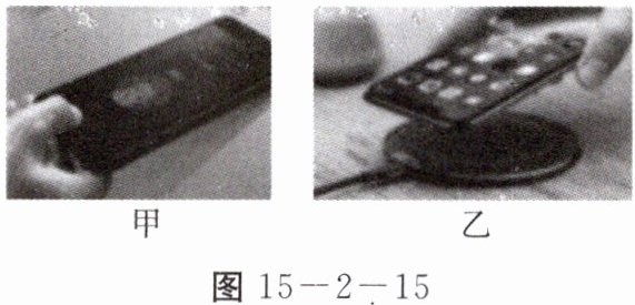 ;图 15 - 2 - 15 乙为一款支持无线反向充电技术的手机,简单来说就是手机可以通过无线充电器实现充电,开启无线反向充电后,A 手机可以作为电源