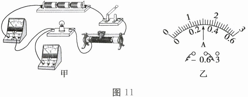 (3)当电压表示数为$2.5V$时,电流表示数如图11乙所示是______$A$,则小灯泡的灯丝电阻约为______$\Omega$(结果保留一位小数)。