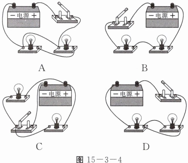 4. 如图 15-3-4 所示,开关闭合后,两灯泡并联的是(