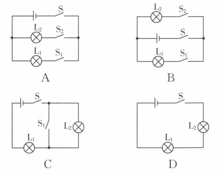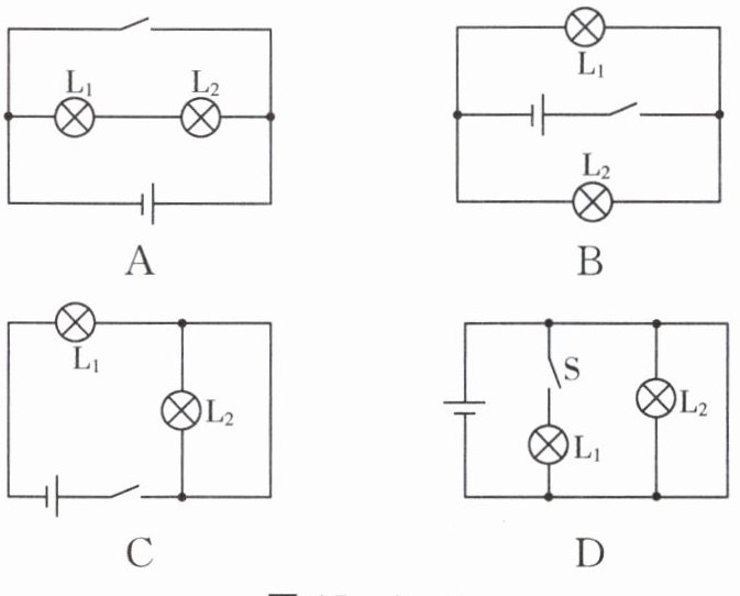 3. 在如图 15-3-3 所示的四个电路中,开关能够同时控制两盏灯,且两灯并联的是(