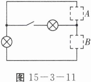 8. 如图 15-3-11 所示,当开关都闭合时两灯组成并联电路,则 A 处是