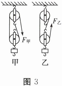 4. 如图3所示,用相同的滑轮组成甲、乙两个滑轮组,分别将同一物体在相同时间内匀速提升相同高度,若不计绳重和摩擦,比较甲、乙两滑轮组,下列说法正确的是(