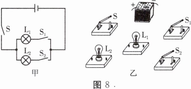 8. 依据图 8 甲中电路图把图 8 乙中各实物连接起来。