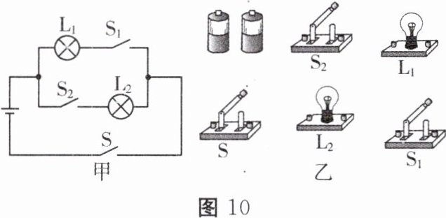 10. 根据如图 10 甲所示的电路图,用笔画线代替导线,连接图 10 乙所示的实物。