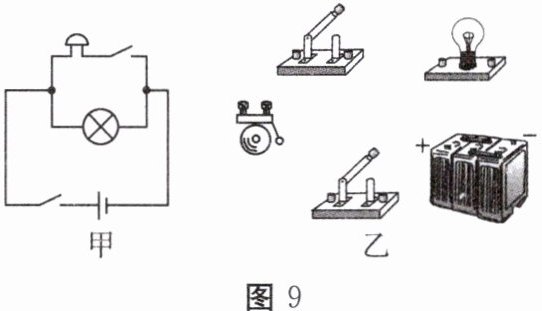9. 根据如图 9 甲所示的电路图,用笔画线表示导线,将如图 9 乙所示的元件连接起来。
