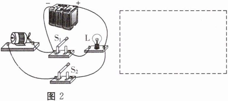 2. 在虚线框里画出如图 2 所示实物图对应的电路图。