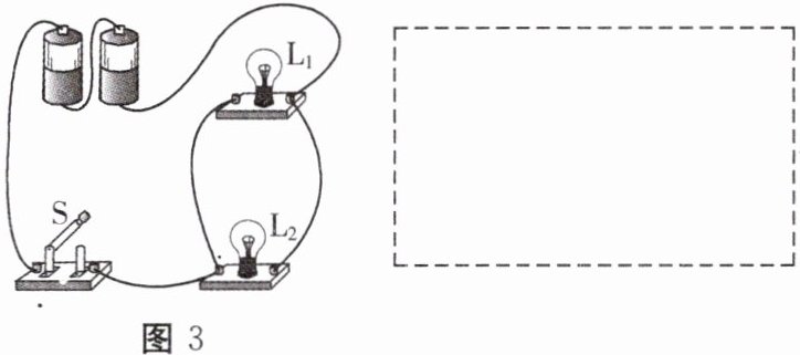 3. 请根据如图 3 所示实物图,在虚线框内画出对应的电路图。