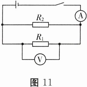 16. 如图11所示,电阻$R_1$为20Ω,闭合开关,电压表和电流表的示数分别为6V和0.5A。求: