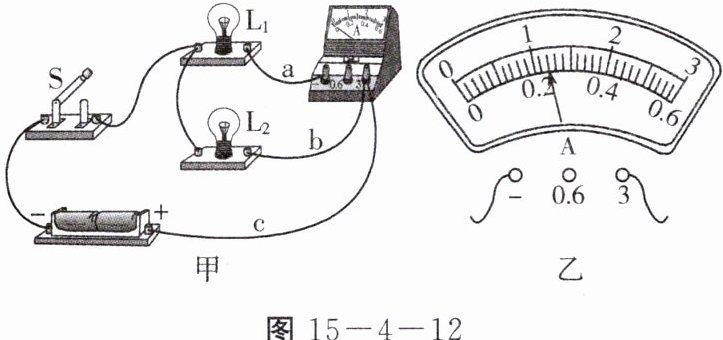 小林同学纠正错误后,电流表的示数如图15-4-12乙所示,则电流表测出的电流是