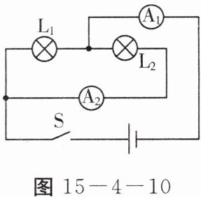 6. 如图15-4-10所示,开关S闭合时,电流表$A_1$测的是