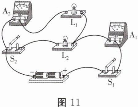9.(临沂)两只规格相同的灯泡按图 11 所示方式连接,将开关$ S_1 $和$ S_2 $闭合,则(