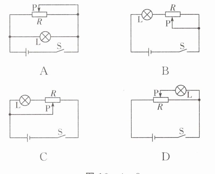 5. 如图 16 - 4 - 8 所示,在保证安全的情况下,肯定能用滑动变阻器调节小灯泡由亮到灭的是(
