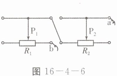 3. 将两只滑动变阻器串联起来,如图 16 - 4 - 6 所示,把 a、b 接入电路后,要使两只变阻器的总电阻最大,则 $ P_1 $、$ P_2 $ 的位置应是(