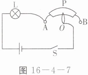 4. 小林拆开了他家的调光台灯,发现其电路是由灯 L 跟一个电位器串联组成的,电路图如图 16 - 4 - 7 所示。闭合开关 S,电位器的滑片 P 由 A 滑向 B,下列说法正确的是(