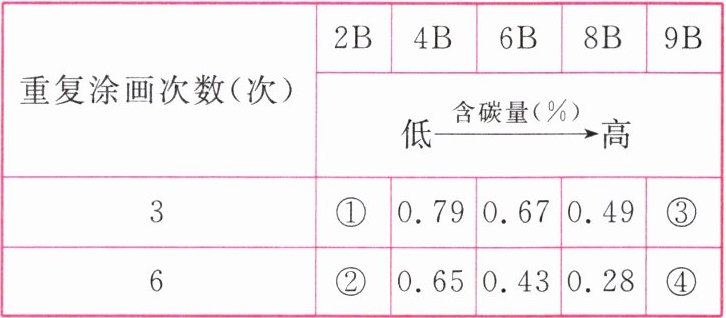 |重复涂画次数(次)|2B|4B|6B|8B|9B|