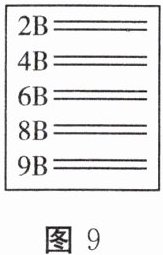 (2)换用不同型号铅笔重复(1)的操作,得到多组等长等宽的线条如图 9 所示。