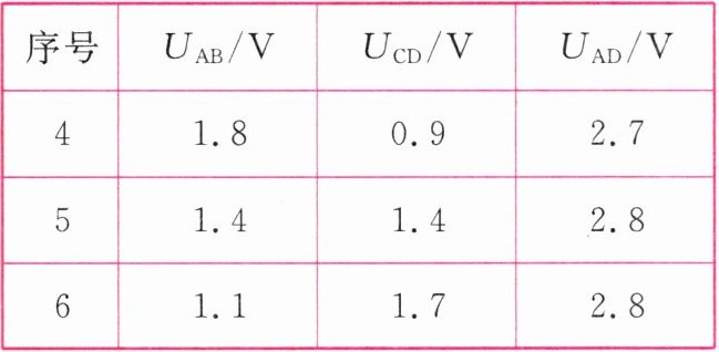 |序号|$ U_{AB} / V $|$ U_{CD} / V $|$ U_{AD} / V $|