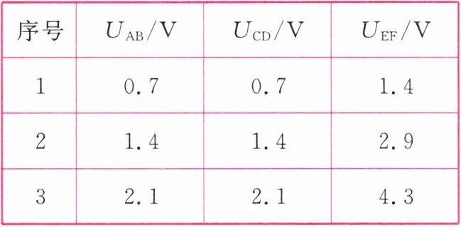 |序号|$ U_{AB} / V $|$ U_{CD} / V $|$ U_{EF} / V $|