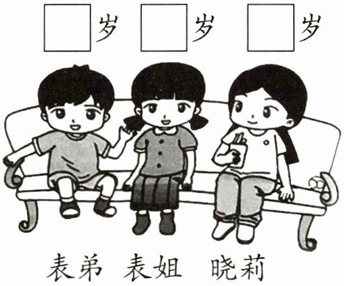 4. 晓莉、表弟、表姐三人的年龄是大于5小于9的不同的三个数。你知道他们分别多少岁吗?填在图中相应的位置。