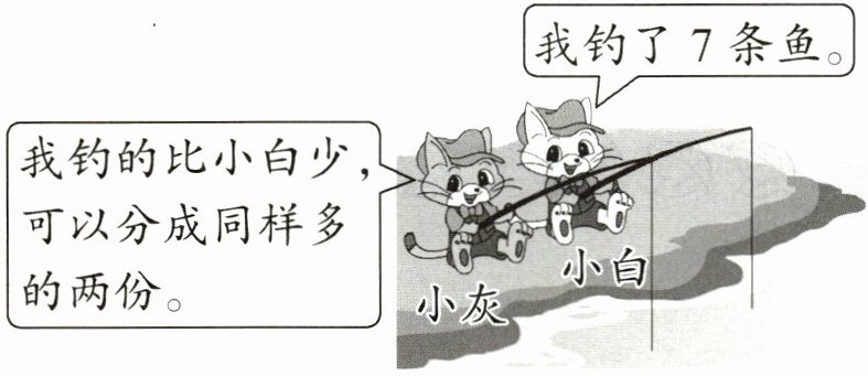 3. 两只猫分6条鱼,可以怎样分?(两只猫都有鱼吃)