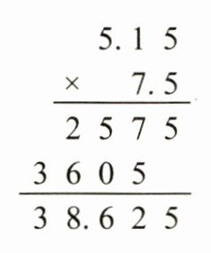 1. 妈妈买了5.15\ kg的新鲜石榴,每千克石榴7.5元,应付多少钱?小坤列竖式计算(如图),应付(