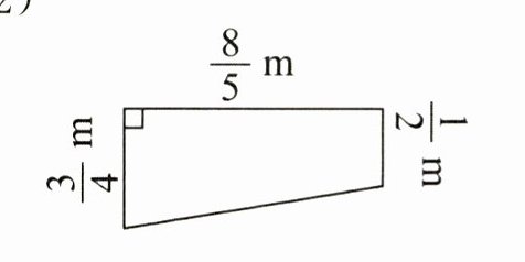 (2)$(\frac{1}{2}+\frac{3}{4})×\frac{8}{5}÷2=1(m^2)$